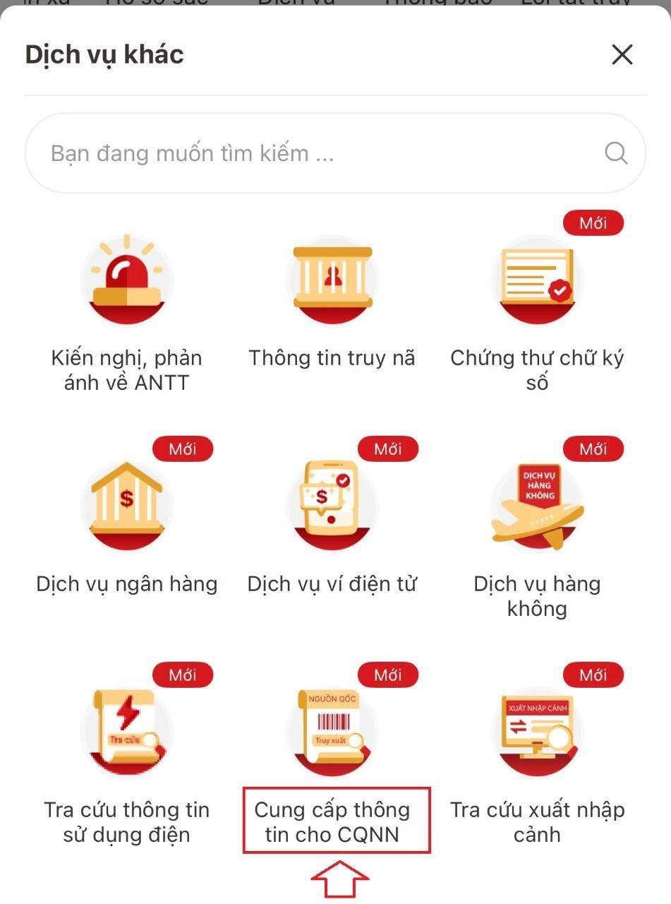 1. Đăng nhập vào ứng dụng VNeID: Mở ứng dụng VNeID phiên bản mới nhất và chọn mục “Dịch vụ khác”.