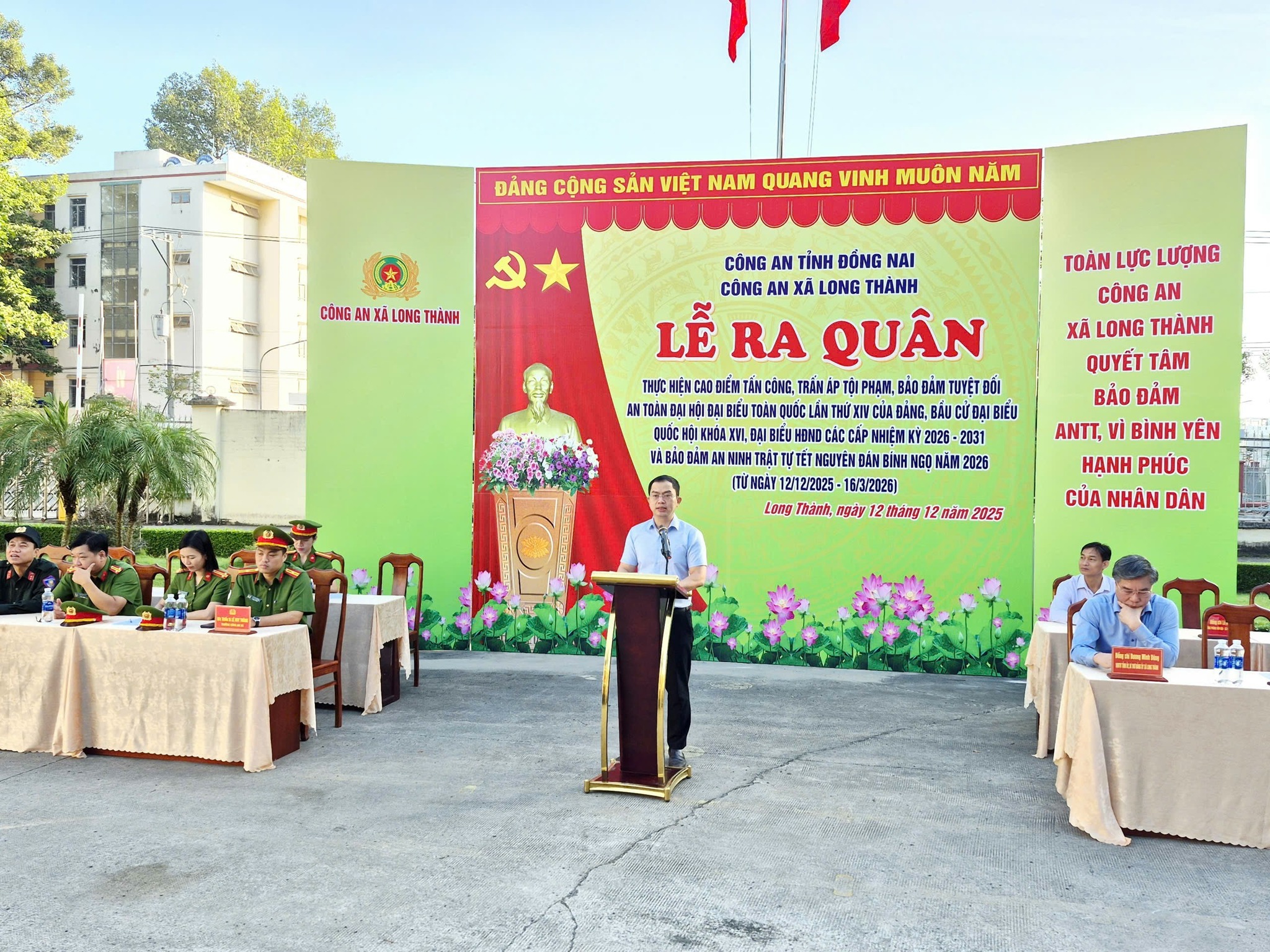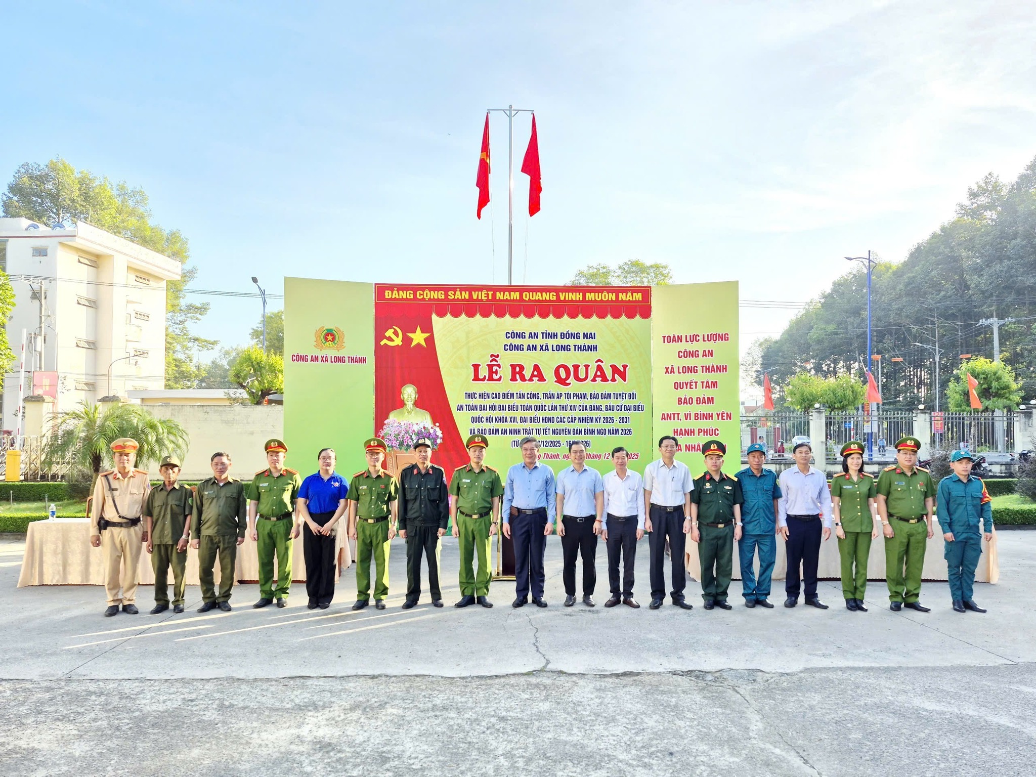 Sáng ngày 12/12/2025, Công an xã Long Thành long trọng tổ chức Lễ ra quân thực hiện đợt cao điểm tấn công, trấn áp tội phạm nhằm bảo đảm tuyệt đối an toàn Đại hội đại biểu toàn quốc lần thứ XIV của Đảng, bầu cử đại biểu Quốc hội khóa XVI, đại biểu HĐND các cấp nhiệm kỳ 2026 - 2031, đồng thời giữ vững an ninh trật tự dịp Tết Nguyên đán Bính Ngọ 2026. Đợt cao điểm diễn ra từ ngày 12/12/2025 đến 16/3/2026.