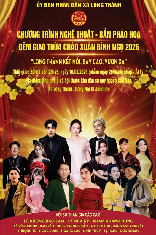 Đảng ủy – HĐND - UBND - Ủy ban MTTQ Việt Nam xã Long Thành tổ chức chương trình nghệ thuật - bắn pháo hoa đêm giao thừa chào xuân bính ngọ 2026 với chủ đề "Long thành kết nối, bay cao, vươn xa”