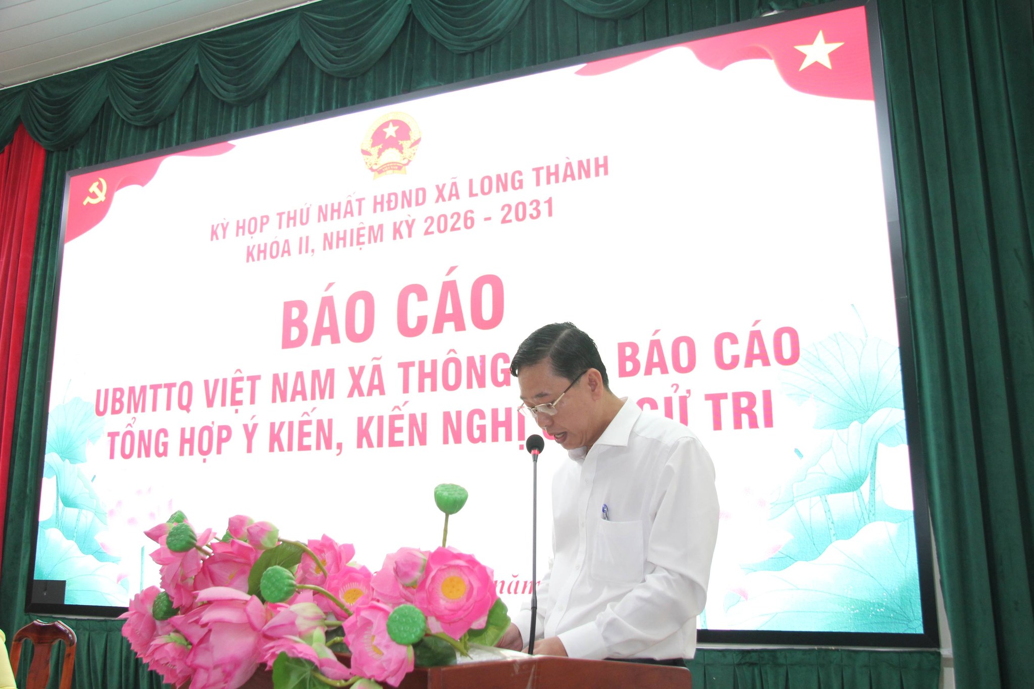 Ngày 26/3/2026, tại Hội trường xã Long Thành, Hội đồng nhân dân xã Long Thành khóa II, nhiệm kỳ 2026 - 2031 đã long trọng tổ chức Kỳ họp thứ nhất. Đây là sự kiện chính trị có ý nghĩa đặc biệt quan trọng, đánh dấu bước khởi đầu cho nhiệm kỳ mới, thể hiện ý chí, nguyện vọng và niềm tin của Nhân dân đối với bộ máy chính quyền địa phương. Kỳ họp được tổ chức theo đúng trình tự, quy định của pháp luật, với tinh thần dân chủ, trách nhiệm và thống nhất cao.