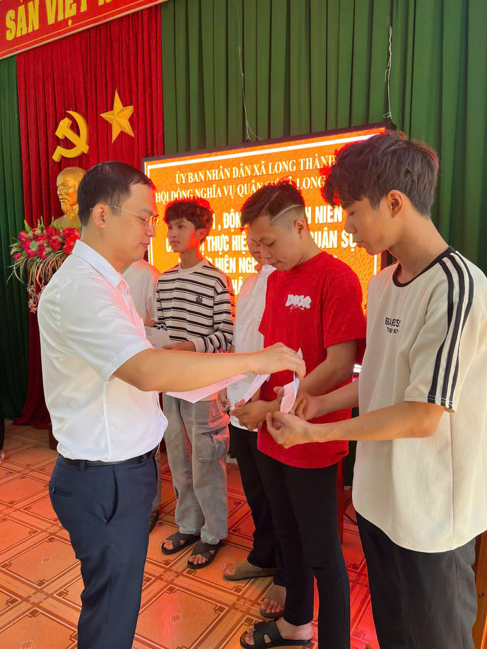 Lãnh đạo địa phương đã tổ chức các đoàn thăm hỏi, động viên thanh niên chuẩn bị thực hiện nghĩa vụ quân sự và thực hiện nghĩa vụ Công an nhân dân năm 2026 tại các ấp trên địa bàn xã Long Thành. Tại buổi họp mặt, Lãnh đạo địa phương đã thăm hỏi và trao những phần quà ý nghĩa nhằm động viên tinh thần các tân binh trước ngày lên đường nhập ngũ, thể hiện sự quan tâm sâu sắc của Đảng ủy, chính quyền và Nhân dân xã Long Thành đối với công tác quốc phòng, quân sự địa phương.