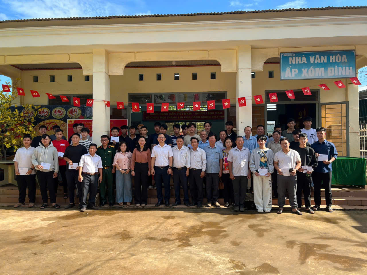 Đoàn thăm hỏi của Lãnh đạo xã họp mặt, động viên các tân binh tại ấp Kim Sơn