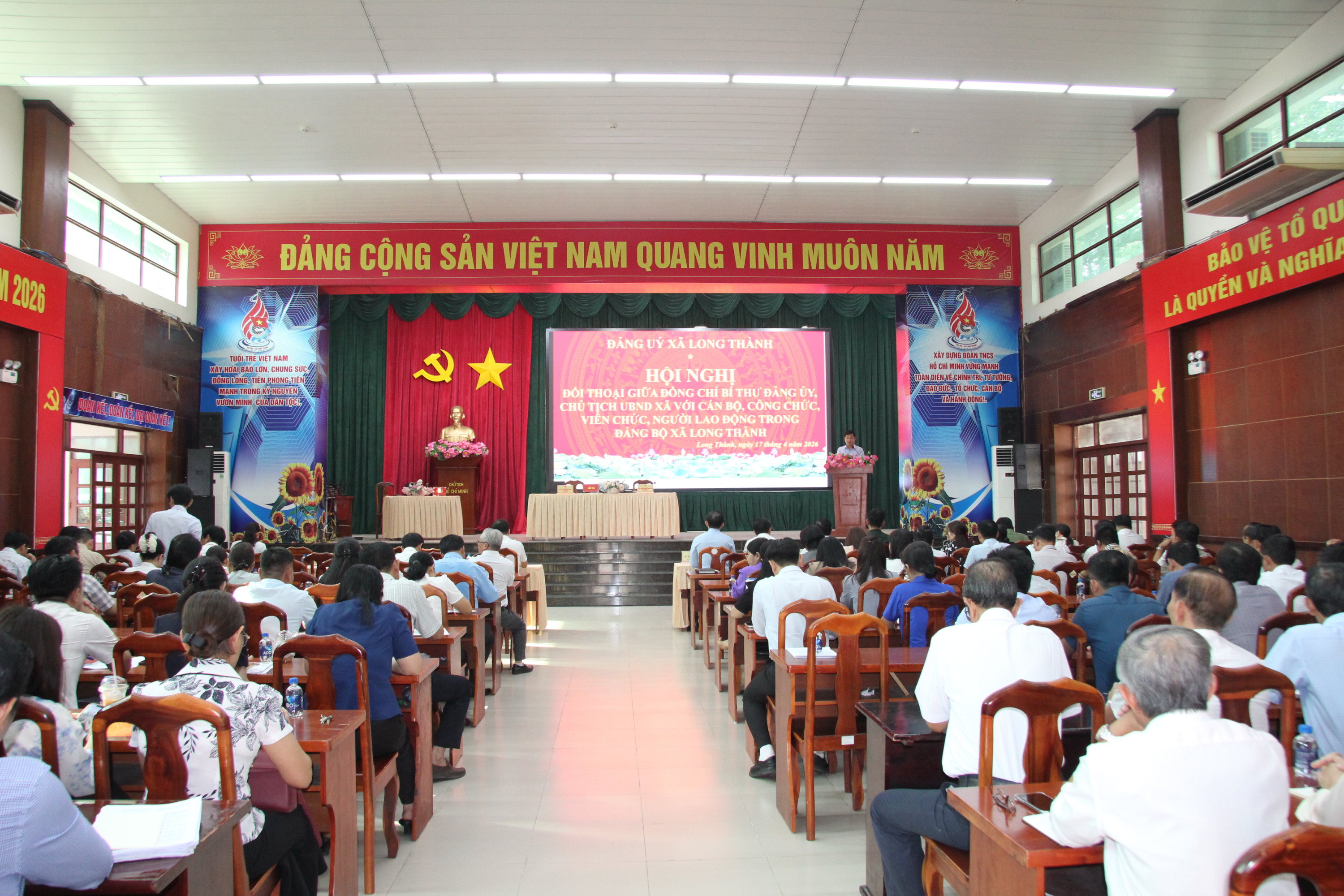 Sáng ngày 17-04, Đảng ủy xã Long Thành, tỉnh Đồng Nai tổ chức Hội nghị Đối thoại giữa đồng chí Nguyễn Hữu Nguyên-Tỉnh ủy viên, Bí thư Đảng ủy-Chủ tịch HĐND xã và đồng chí Lê Hoàng Sơn-Phó Bí thư Đảng ủy-Chủ tịch UBND xã với gần 200 cán bộ, công chức, người lao động trong toàn Đảng bộ xã