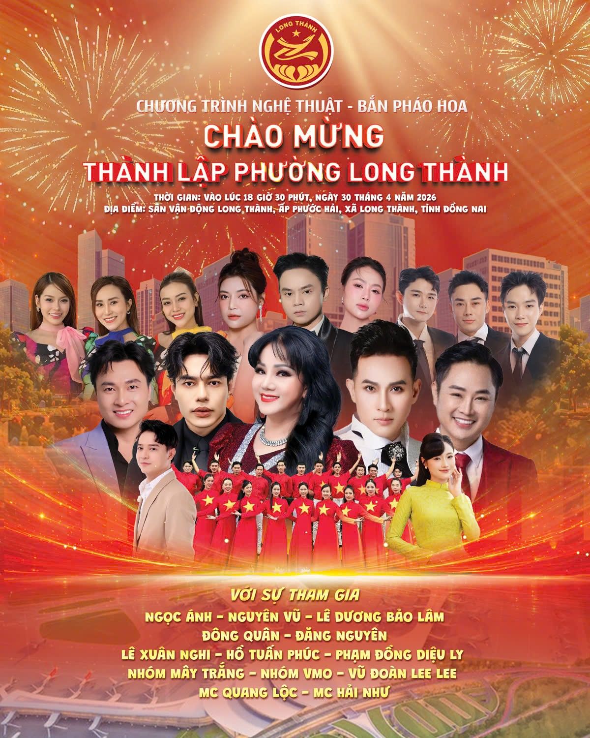 <p>Nghị quyết số 237/NQ-UBTVQH16 ngày 14/4/2026 của Ủy ban Thường vụ Quốc hội về thành lập 10 phường của tỉnh Đồng Nai, trong đó có Phường Long Thành, có hiệu lực từ ngày 30/4/2026.</p><p>Nhân dịp này, địa phương tổ chức Chương trình biểu diễn văn nghệ và bắn pháo hoa với nhiều tiết mục đặc sắc, ca ngợi quê hương, đất nước và khát vọng vươn lên của Long Thành.</p><p>Thời gian: 18 giờ 30 phút, ngày 30/4/2026</p><p>Địa điểm: Sân vận động Long Thành</p><figure class="image"><img style="aspect-ratio:393/590;" src="https://longthanh.dongnai.gov.vn/uploads/longthanh/news/2025_06/ban-ph_1.jpg" width="393" height="590" /></figure><p>Màn bắn pháo hoa tối 30/4 không chỉ là phần kết ấn tượng cho chương trình nghệ thuật mừng Nghị quyết số 237/NQ-UBTVQH16 ngày 14/4/2026 của Ủy ban Thường vụ Quốc hội về thành lập 10 phường của tỉnh Đồng Nai, trong đó có Phường Long Thành, mà còn là góp phần tạo không khí vui tươi, đoàn kết và niềm tin vào tương lai phát triển của địa phương</p><p>Ngoài ra, chương trình nghệ thuật và pháo hoa này còn được kỳ vọng lan tỏa rộng rãi trên các phương tiện truyền thông và thu hút sự quan tâm của người dân cả nước, thể hiện tinh thần phấn khởi sau một sự kiện quan trọng. Long Thành Kết nối, Bay cao, Vươn xa!</p><p>Kính mời toàn thể cán bộ, đảng viên, đoàn viên, hội viên và Nhân dân đến tham dự, cổ vũ, cùng chung vui trong ngày hội lớn của quê hương.</p><figure class="image image_resized" style="width:75%;"><img style="aspect-ratio:1200/1500;" src="https://longthanh.dongnai.gov.vn/uploads/longthanh/news/2026_04/bph-2.jpg" width="1200" height="1500" /></figure>