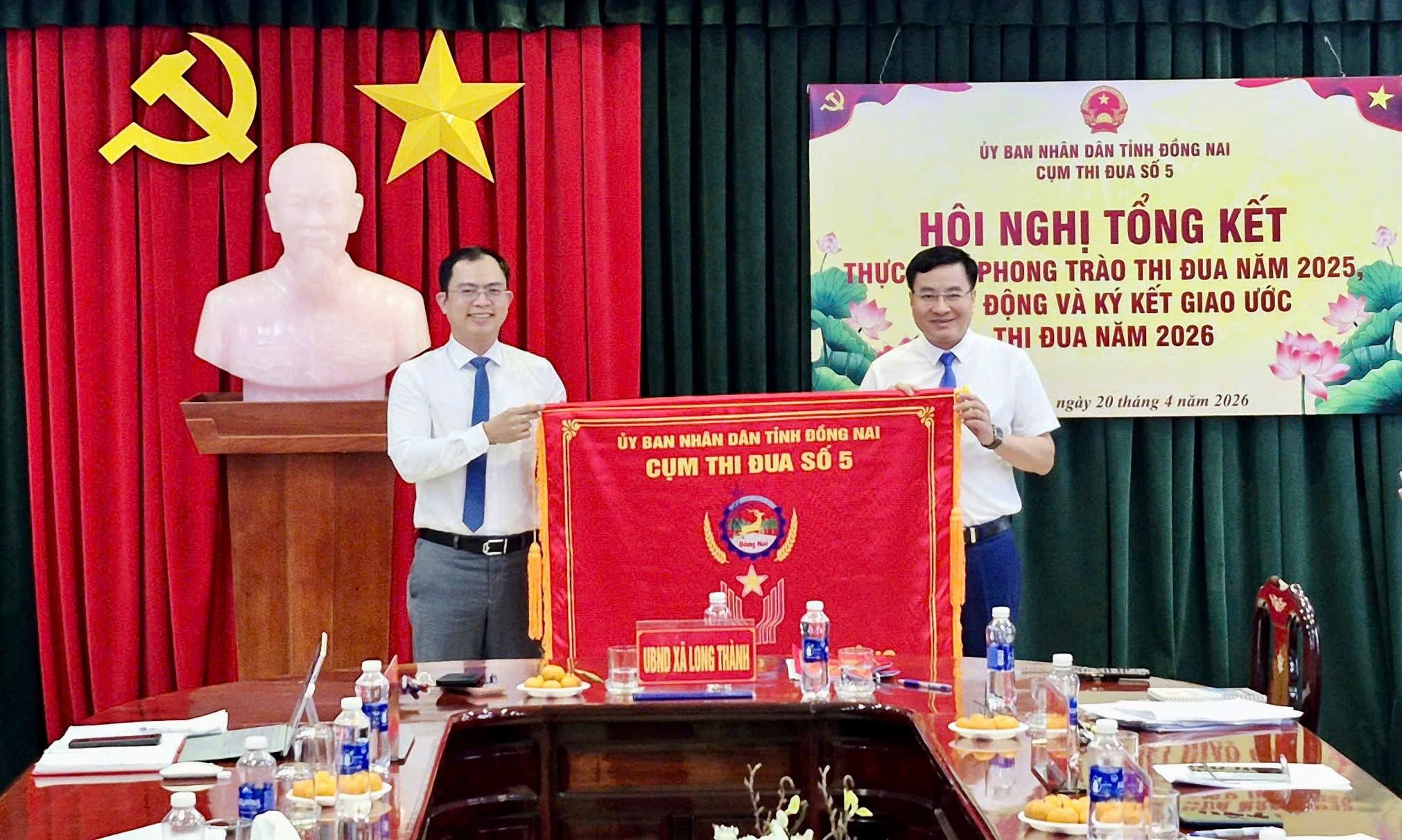 Chiều ngày 20/4/2026, tại UBND xã Long Thành, Cụm thi đua số 5 đã tổ chức Hội nghị tổng kết phong trào thi đua yêu nước năm 2025 và ký kết giao ước thi đua năm 2026. Hội nghị do đồng chí Lê Hoàng Sơn - Phó Bí thư Đảng ủy, Chủ tịch UBND xã Long Thành, Cụm trưởng Cụm thi đua số 5 chủ trì đã diễn ra trong không khí đoàn kết, trách nhiệm và quyết tâm cao, nội dung chính của hội nghị là đánh giá kết quả thực hiện nhiệm vụ của các đơn vị thành viên trong năm qua, biểu dương những tập thể có thành tích tiêu biểu xuất sắc, đồng thời đề ra phương hướng, nhiệm vụ thi đua trong năm 2026.